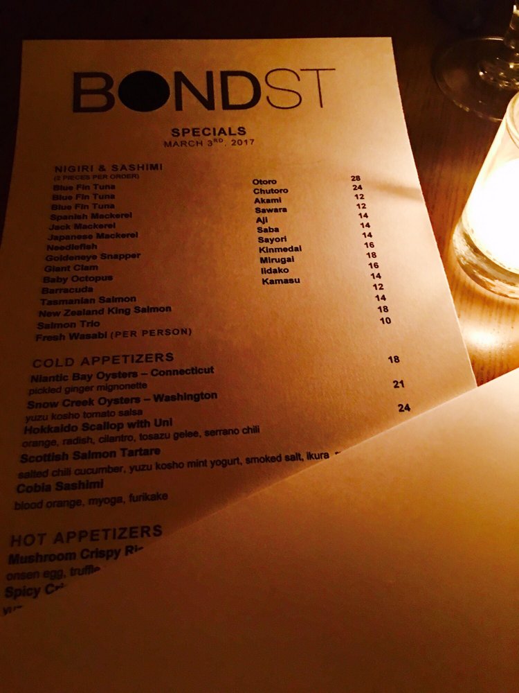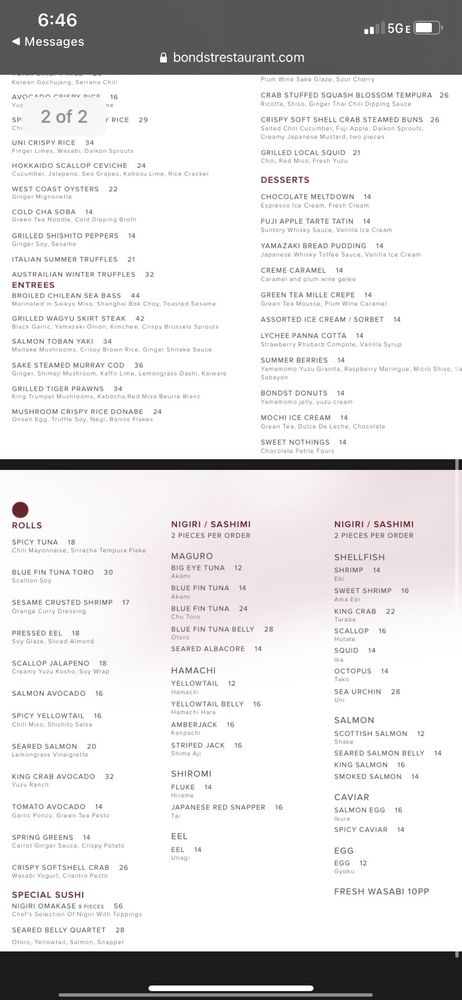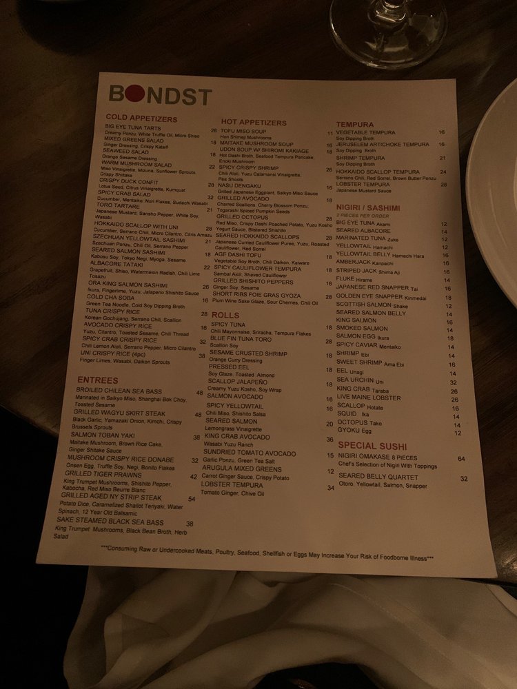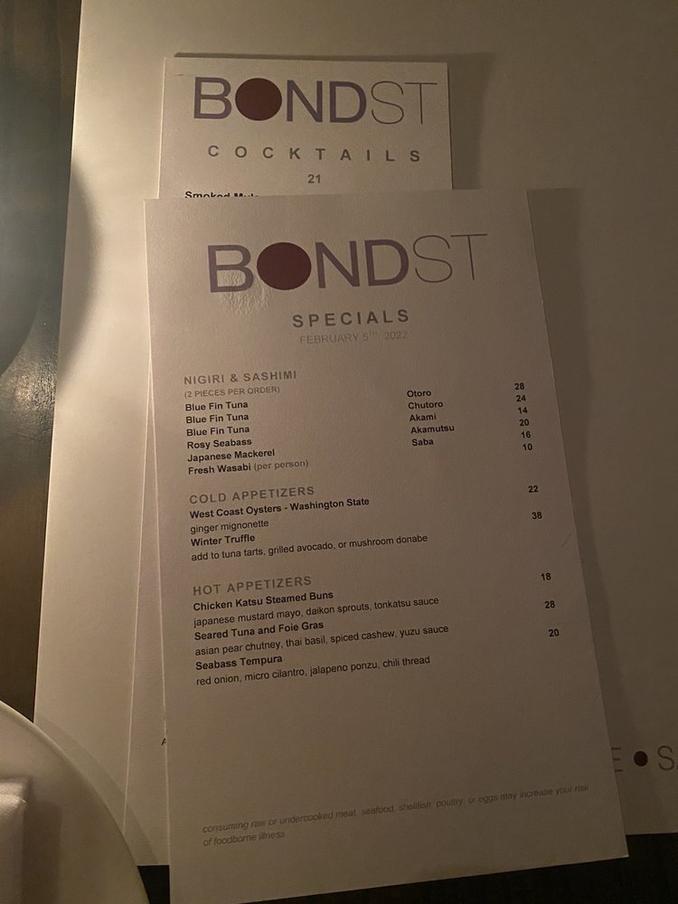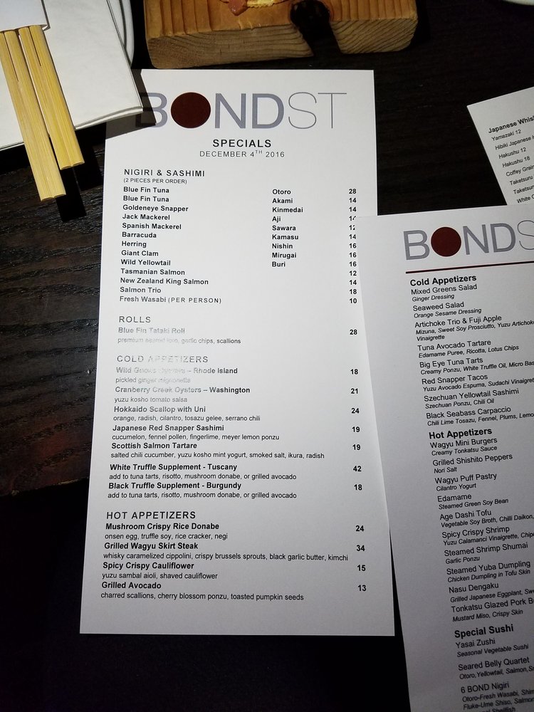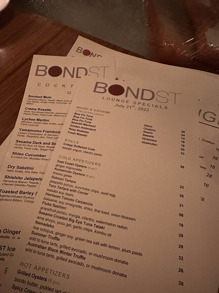 BondST is a trendy sushi bar nestled in New York City that offers a unique dining experience. With a menu filled with delectable options like Szechuan Yellowtail Sashimi, Spicy Crispy Shrimp, and Broiled Chilean Sea Bass, BondST promises to delight your taste buds. The ambiance is perfect for a date night or special occasion, with dim lighting and a classy setting. Customers rave about the quality of the sushi and the creative dishes, such as the Tuna Crispy Rice and Wagyu Skirt Steak. While some reviewers mention the aggressive use of wasabi, overall, BondST receives high praise for its exceptional service and delicious food. If you're looking for a top-notch sushi experience in the heart of the city, BondST is the place to be.